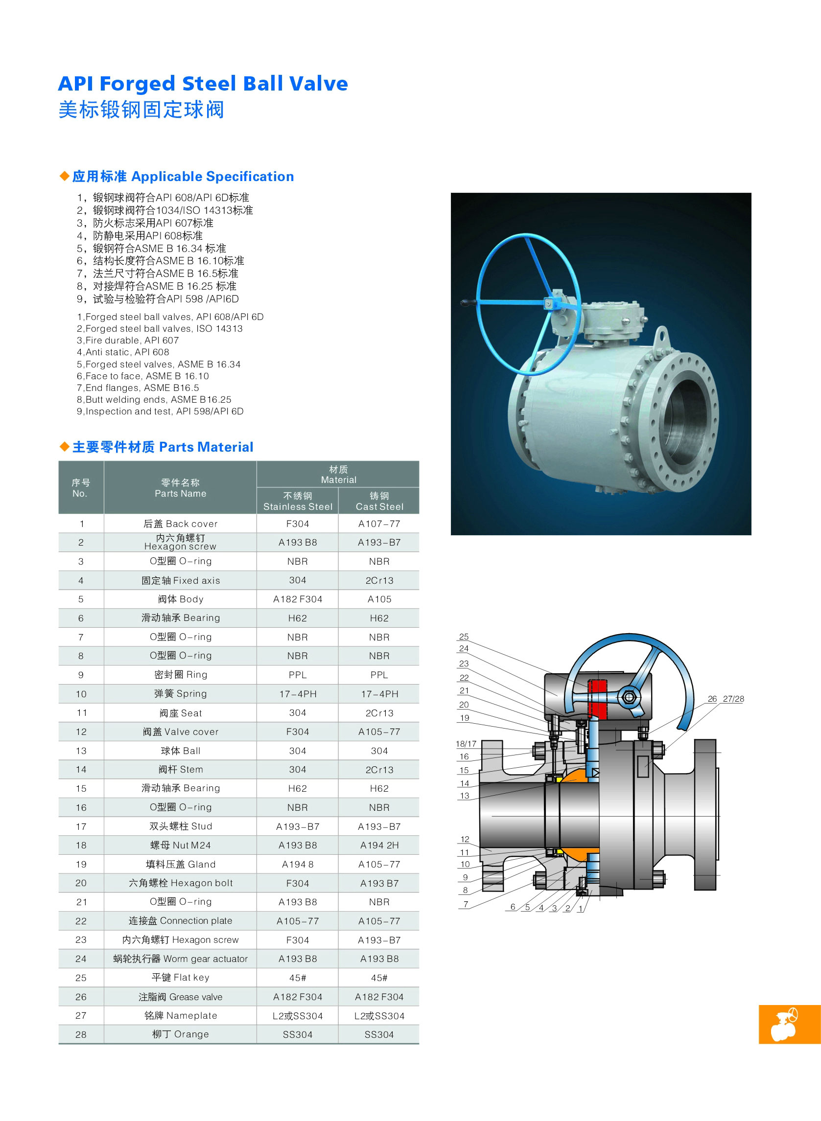閥體材質: A105鍛鋼、WCB鑄鋼、不銹鋼304、316 制造標準: 國標GB、德國DIN、美國API、ANSI