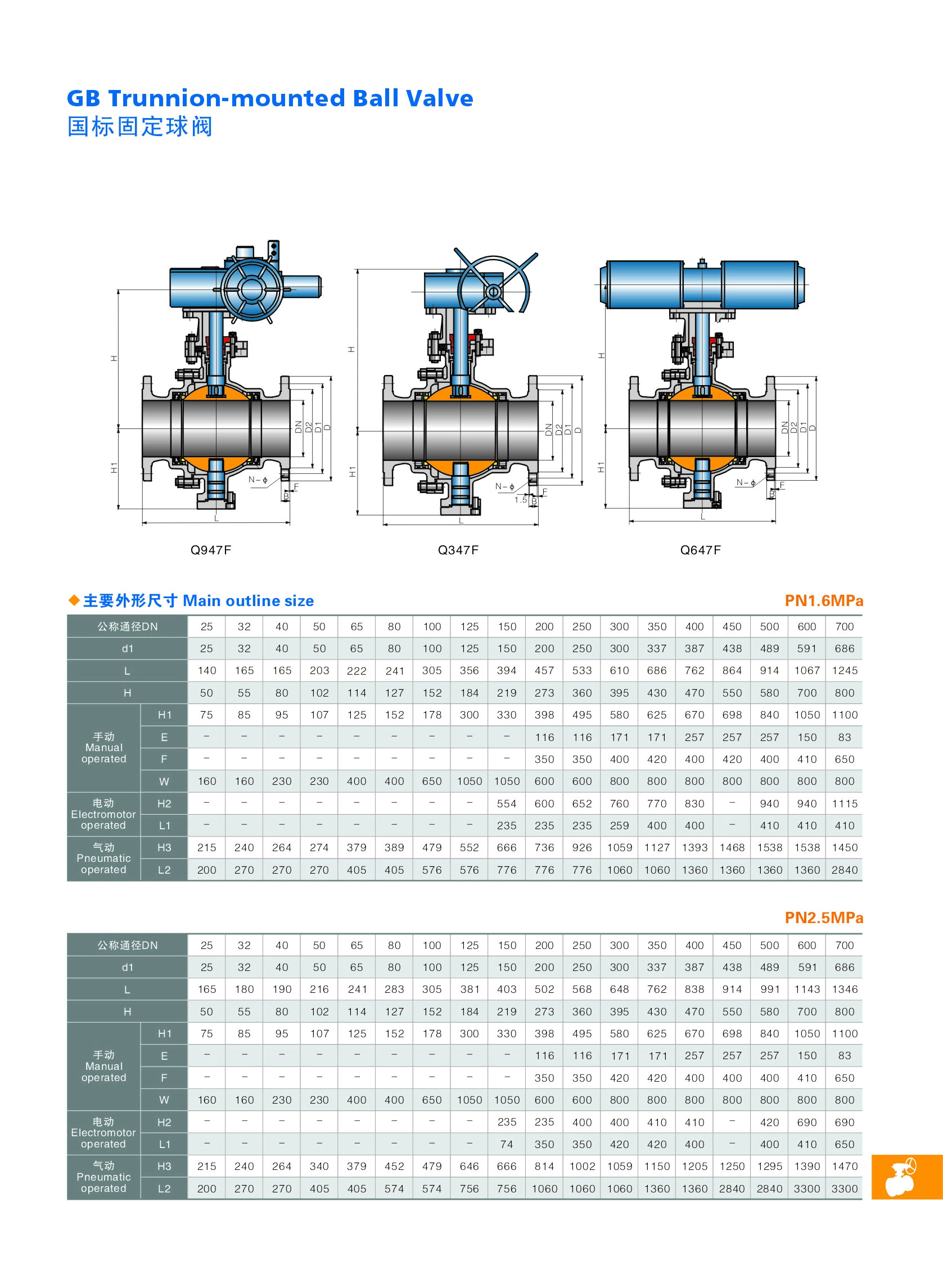 公稱通徑: DN150~DN1200 結構形式: 固定球形