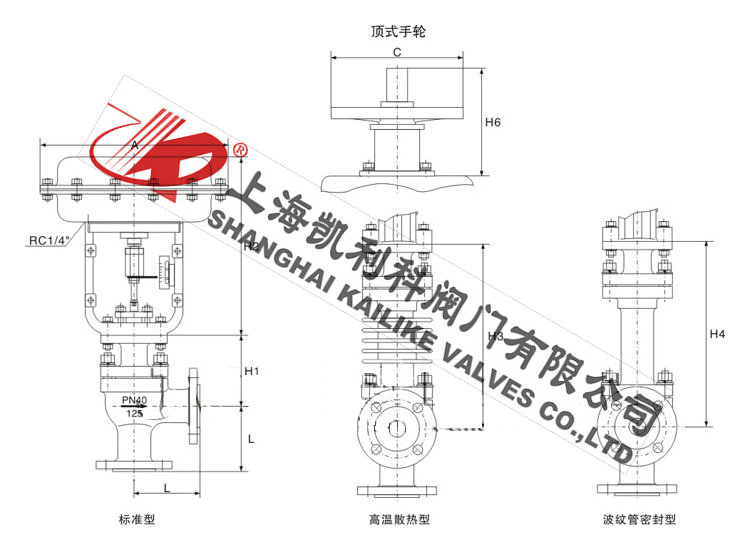 上  閥  蓋 標(biāo)準(zhǔn)型:-17-230℃  散熱型:230-450℃  低溫型:-60--196℃  波紋管密封型:-40-350℃