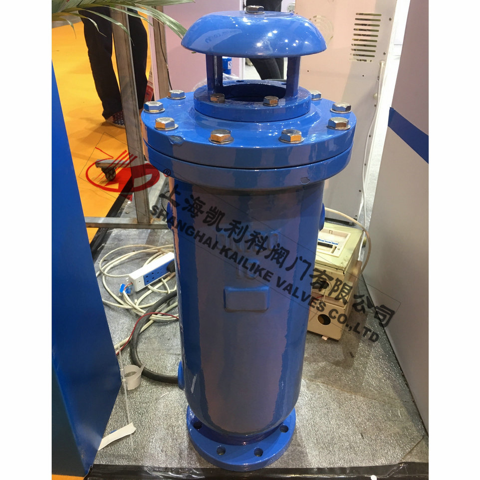 當管內開始注水時,塞頭停留在開啟位置,進行大量排氣,當空氣排完時,閥內積水浮球被浮起,傳動塞頭至關閉位置,停止大量排氣;當管內水正常輸送時,如有少量空氣聚集在閥內到相當程度,閥內水位下降,浮球隨之下降,此時空氣則由小孔排出。當抽水機停止,管內水流空時,或遇管內產生負壓時,此時塞頭開啟,吸入空氣確保管線安全。