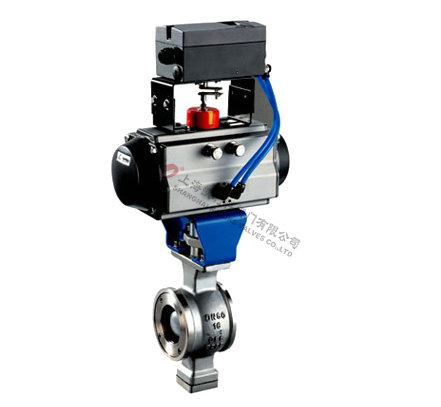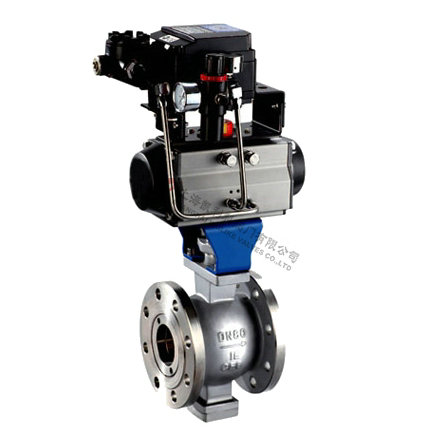 氣動V型球閥是球閥的一種,它的關閉件是半球體上開有V字型開口,V型開口具有鋒利的刃口,在球體回轉過程中,關閉件之間有擦拭作用,對介質具有強有力的切斷力,球體的V型開口與閥座流道形成一個扇形區域,在回轉過程中可改變流道截面積,形成對介質的精確調節,它是一種角回轉的調節閥,其密封性能與普通球閥相同,使它同時具備調節和開關兩種功能,與氣動或電動執行器配套,廣泛使用于工業過程自控系統中。