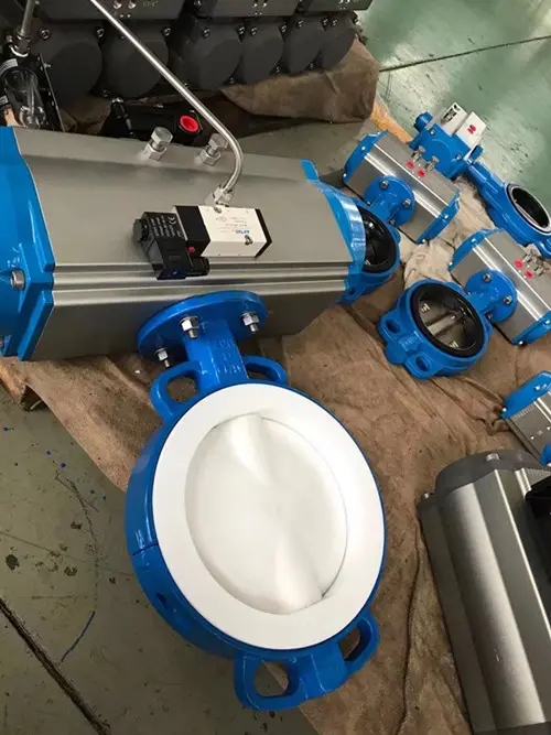 D671F46氣動襯氟對夾蝶閥廣泛用于防腐管道系統上。主要用以實現閥門的開啟、關閉與調節。全襯聚四氟乙烯(F4)、聚三氟氯乙烯(F3)和聚全氟乙丙烯(F46)氟塑料襯里閥,具有耐腐蝕、無泄